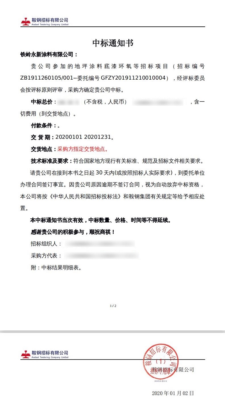 發(fā)布來(lái)源:鞍鋼中標(biāo)通知書