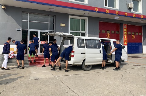 (久奈員工與消防官兵搬運(yùn)慰問品)