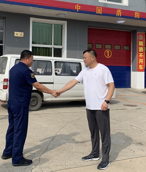 ? ? ? 在消防大隊(duì)駐地,付總向消防官兵致以問候,對消防官兵一直以來對鐵嶺經(jīng)濟(jì)開發(fā)區(qū)消防安全工作表示支持與深深地感謝,對他們高溫酷暑守寸土、不顧安危保平安以及對鐵嶺經(jīng)濟(jì)開發(fā)區(qū)經(jīng)濟(jì)發(fā)展和人民財(cái)產(chǎn)安全作出的貢獻(xiàn)表示崇高的敬意。